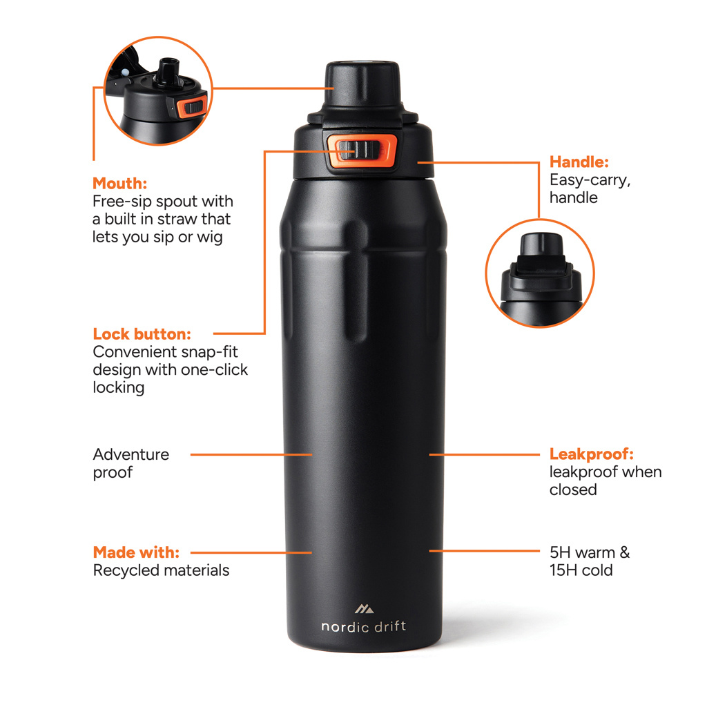 Nordic Drift Trail RCS Insulated Lockable Sports Bottle, black