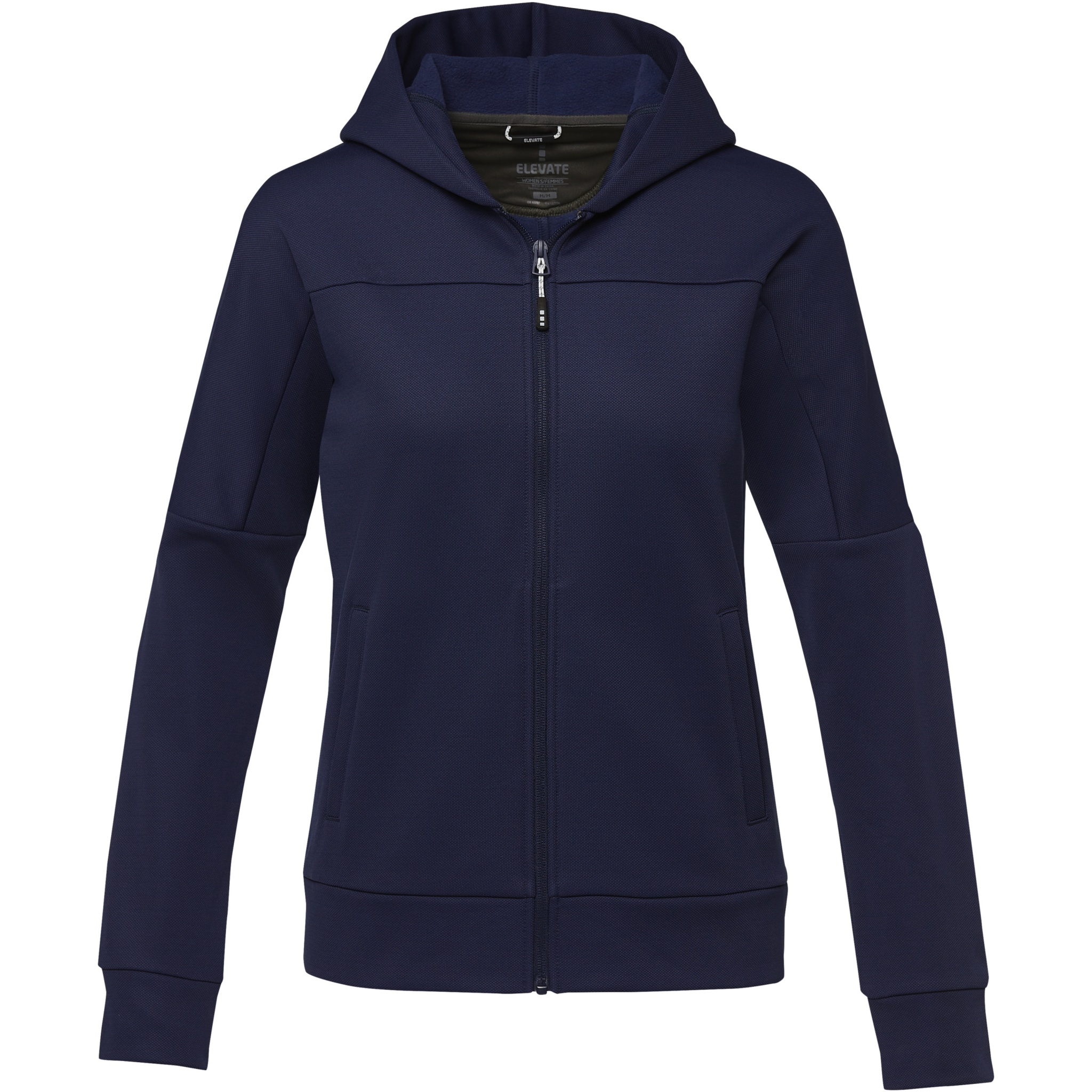 The Nubia women's performance full zip knit jacket – a perfect fusion of style and innovation. Made from a 245 g/m² polyester and Sorona® blend, the material showcases a distinct "pique look" texture, setting it apart with its unique and characteristic look. At its core, the Nubia features the remarkable Sorona® fabric, a material that sets new standards in comfort and performance. This sustainable fabric, comprising 30% of the jacket's composition, offers an exceptional balance between flexibility, durability, and environmental responsibility. The jacket's interior is thoughtfully brushed, ensuring a soft feel against your skin. This brushed interior not only enhances comfort but also helps to retain warmth, making this jacket an ideal companion in cooler weather. Functionality is elevated to a new level with the inclusion of an interior media exit port complete with a cord guide. This jacket is designed with a fitted shape for a feminine look.