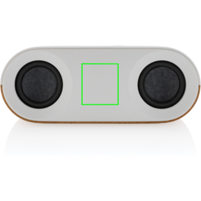 10W wireless speaker made with FSC® 100% cork and RCS (Recycled Claim Standard) certified recycled ABS. Total recycled content: 25% based on total item weight. RCS certification ensures a completely certified supply chain of the recycled materials.The speaker is equipped with a 1200 mAh battery to ensure up to 10 hours of playing time and BT5.3 for smooth connection with clear sound. Connection range up to 10 metres. With mic and pick up function to answer calls. Packed in FSC mix FSC® box. Including RCS certified recycled TPE charging cable. Item and accessories 100% PVC free.