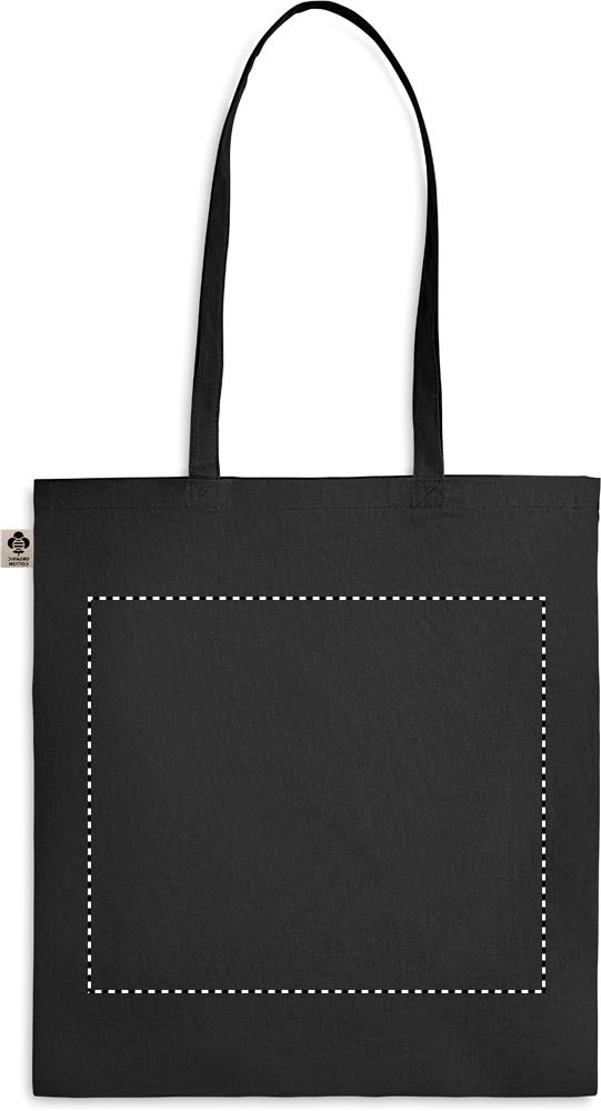 Organic cotton shopping bag with long handles. A classic tote bag design made to carry your daily groceries or other items. Carry the bag in your hands or over your shoulder with the long handles. Made from 100% natural organic cotton 140 gr/m².
