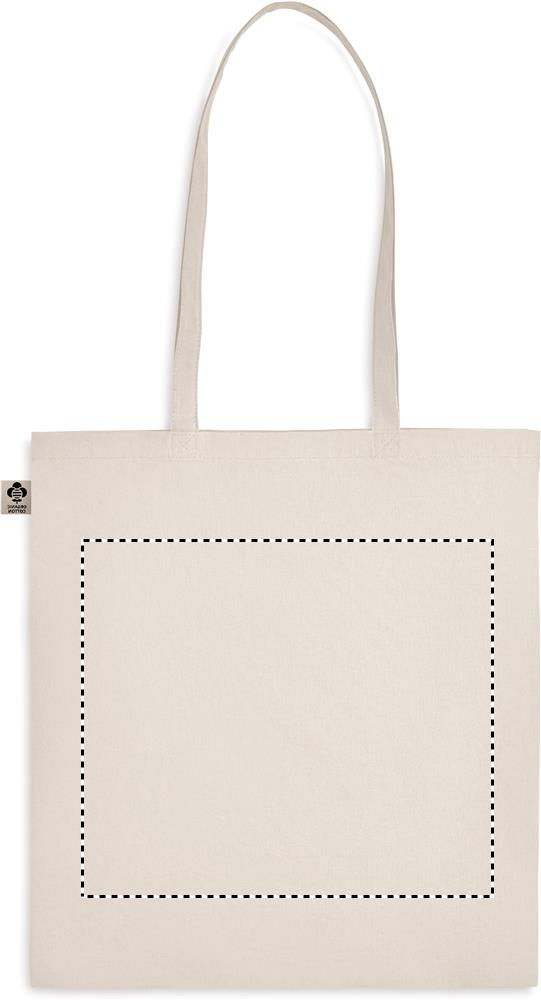 Organic cotton shopping bag with long handles. A classic tote bag design made to carry your daily groceries or other items. Carry the bag in your hands or over your shoulder with the long handles. Made from 100% natural organic cotton 140 gr/m².