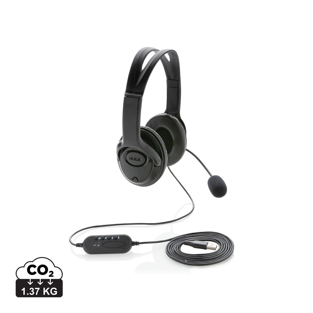 PC USB stereo headset with in-line soundcard and volume/mute control delivers superlative stereo sound while its microphone ensures clear conversation during calls. This lightweight ABS material over-ear headset is designed for daily long time use and compatible with PC and Mac®. With 2 metre USB A cable to give optimal connection with any computer. Perfect for calling and video calls.