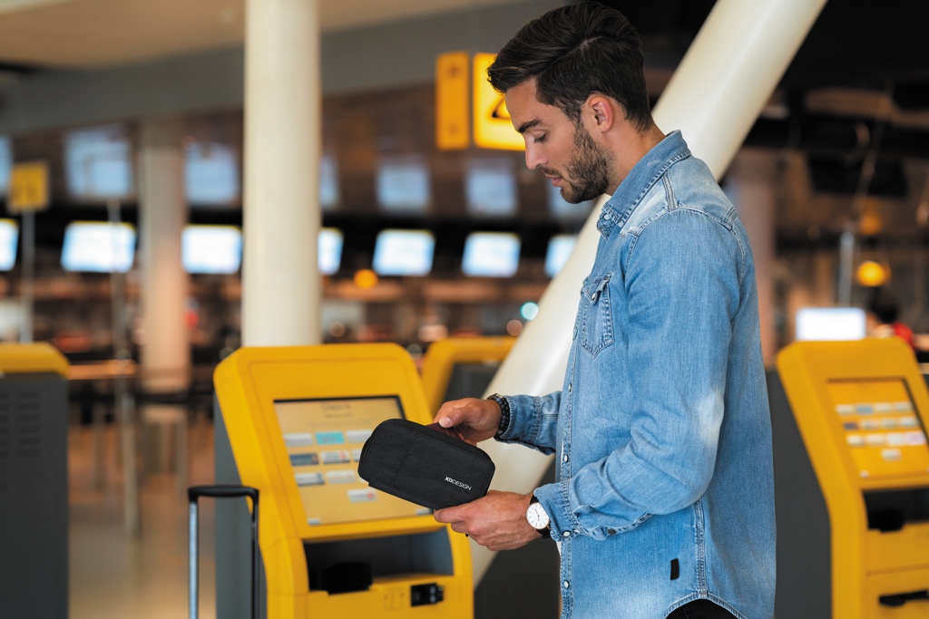 The XD Design passport holder keeps your valuables handy and protected.Keep your passport safe from skimming with the RFID-protected pocket and your boarding passes within reach in the front pocket with magnet closure. What’s special about this passport case is that you can also use this holder as a phone stand to watch your favorite videos while traveling. The 3-in-1 inside storage space also allows you to use it as a wallet and phone pouch. Fits up to 5,5” cell-phone.Made from recycled materials. Registered design®