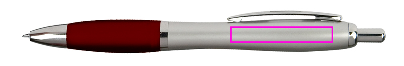 Ballpoint pen with blue writing large capacity refill and color contrast soft touch grip zone. We print your logo on the right side of the clip.