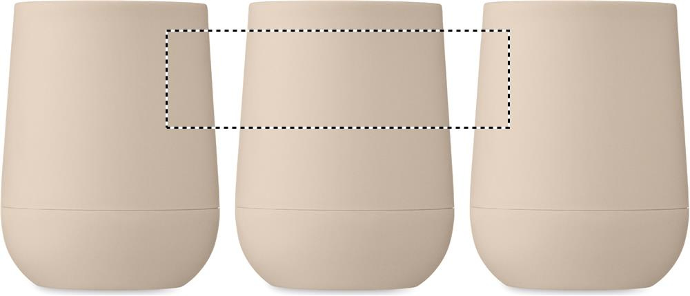 Double wall tumbler in PP with slide cover mouthpiece lid in PS and ABS. Capacity: 300 ml.