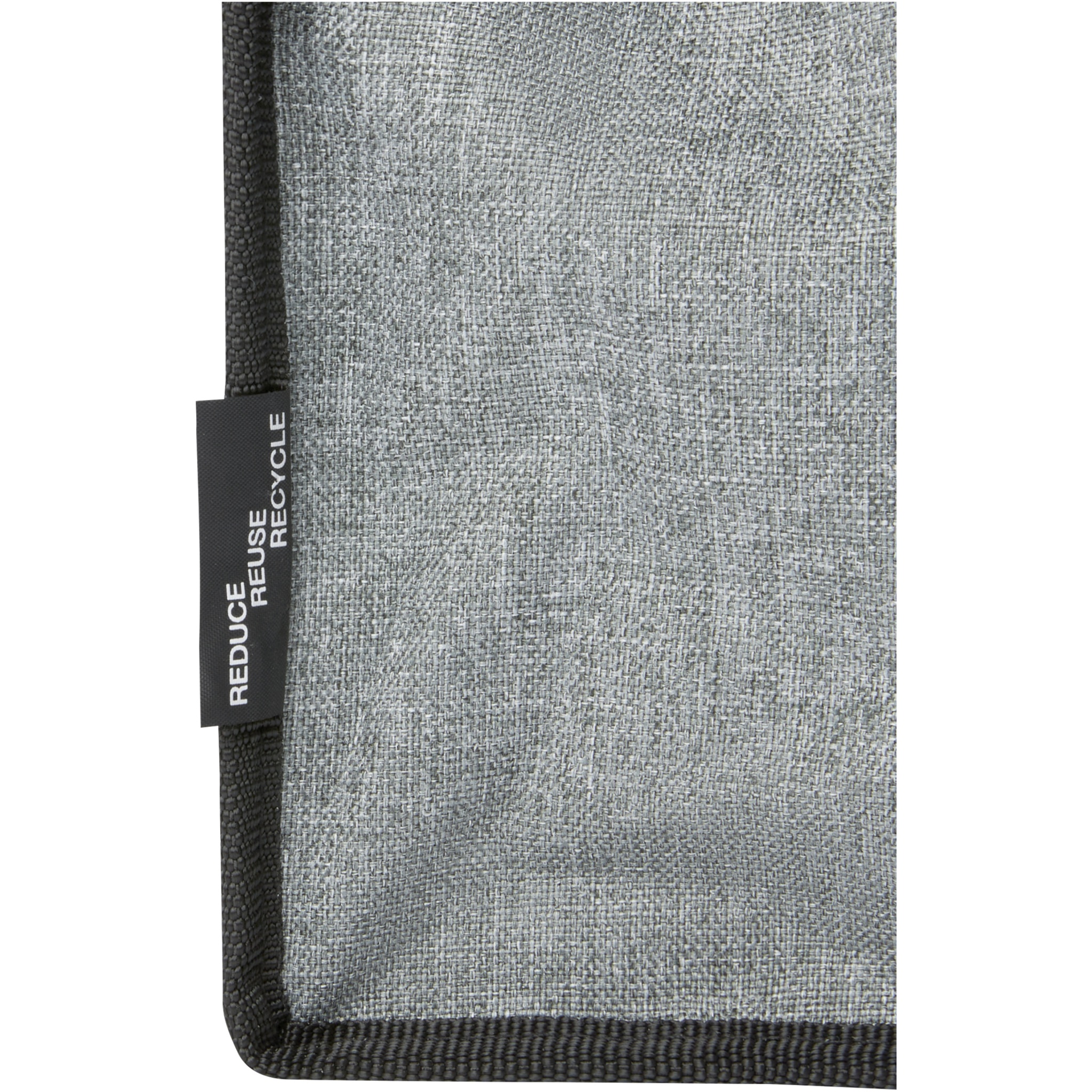 The Reclaim 4-can cooler bag features an exterior made from 100% GRS certified recycled PET plastic, making it a sustainable choice. Features a fold-over closure and a grab handle for easy carrying.