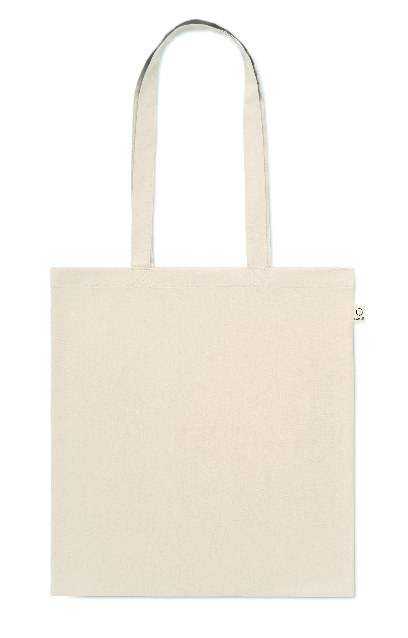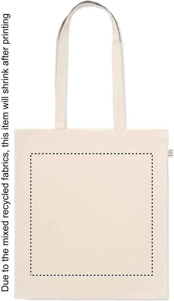 Recycled pre-consumer cotton shopping bag (70% recycled cotton and 30% RPET) with long handles. 140 gr/m².