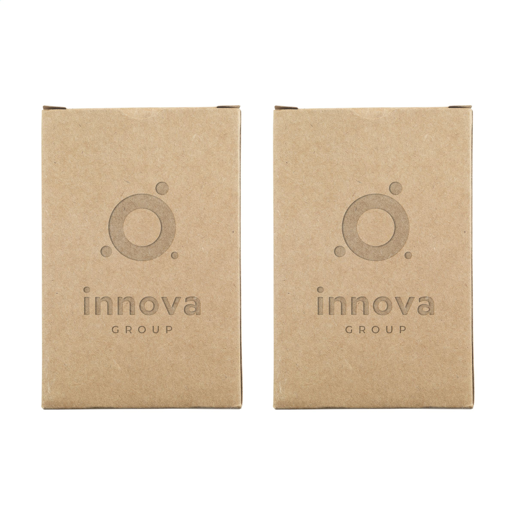 WoW! Two decks of playing cards made from high-quality recycled kraft paper (250 g/m²). This game consists of 52 playing cards and 2 jokers. Stored in a box made from recycled cardboard. The back of these cards all have the same standard image. These decks of cards are supplied in a pinewood storage box with a sliding lid.