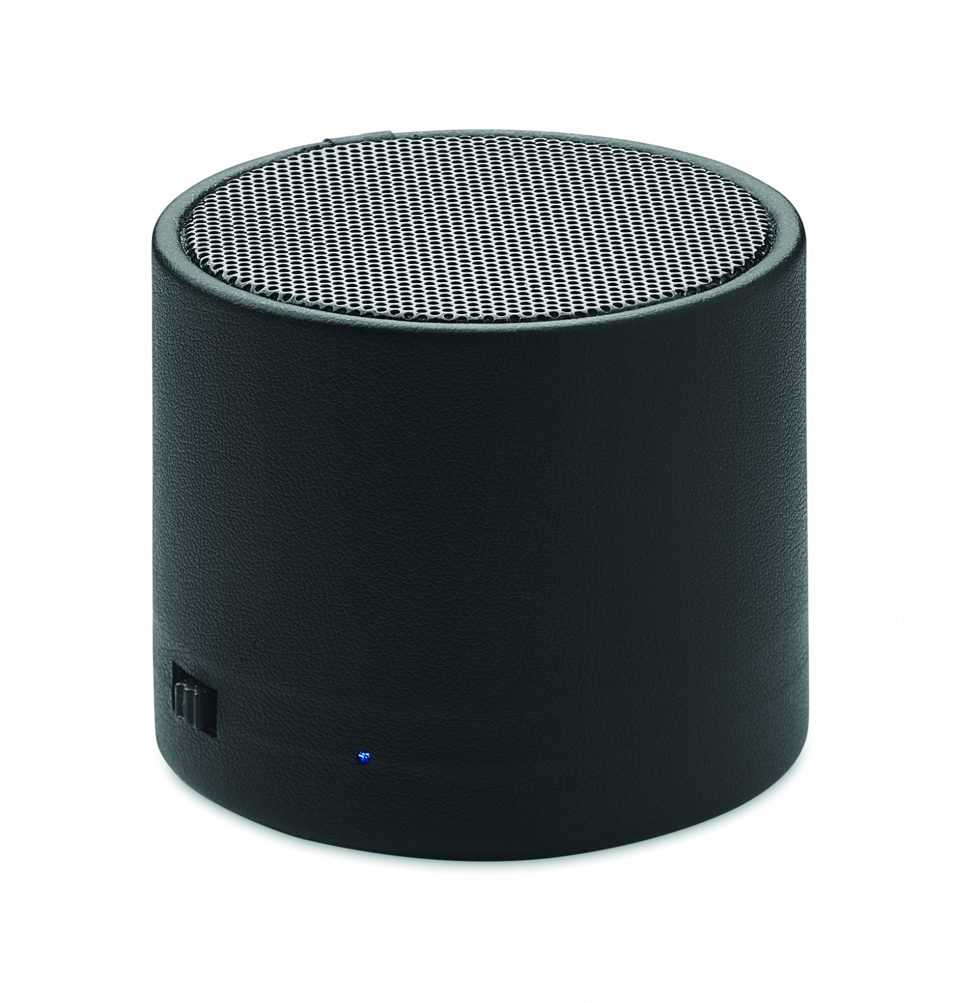 5.0 wireless speaker with casing in ABS and PU which is 58% recycled (40% recycled polyester and 18% recycled PU) and LED light indication. Output data: 3W, 3 Ohm and 5V. Playing time approx. 3h.