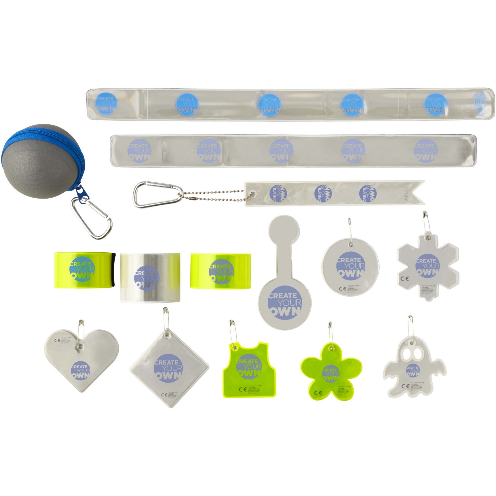 Includes 5 slap-wraps, 8 reflective hangers, 1 reflective magnet, 1 reflective meteor and 1 reflective product catalogue. Products are manufactured in Europe are tested and certified to meet the EN17353:2020 standard Type B1 and B2, guaranteeing high quality and visibility.