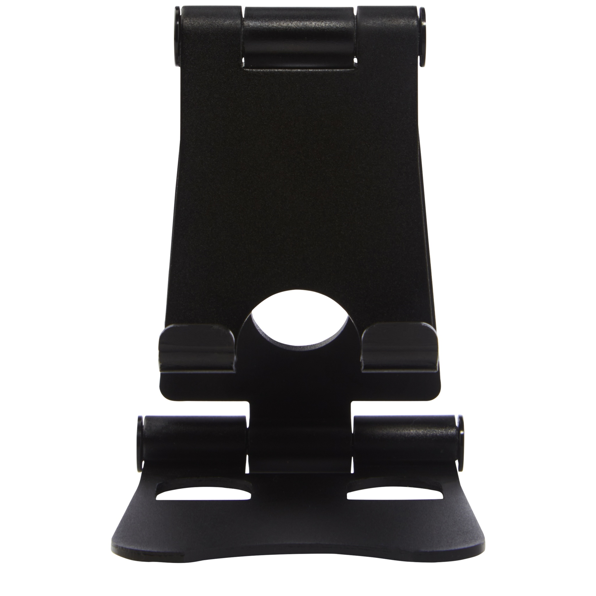 Foldable phone stand made of aluminium. Both the height and viewing angle can be adjusted, making this the perfect accessory for conference calls, broadcasts, live streaming, or simply to watch a movie. The bottom has anti-slip material to prevent it from moving. Delivered in a premium kraft paper box with a colourful sticker.