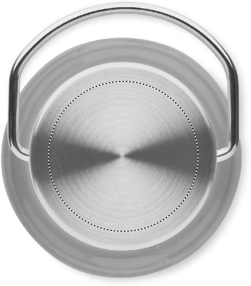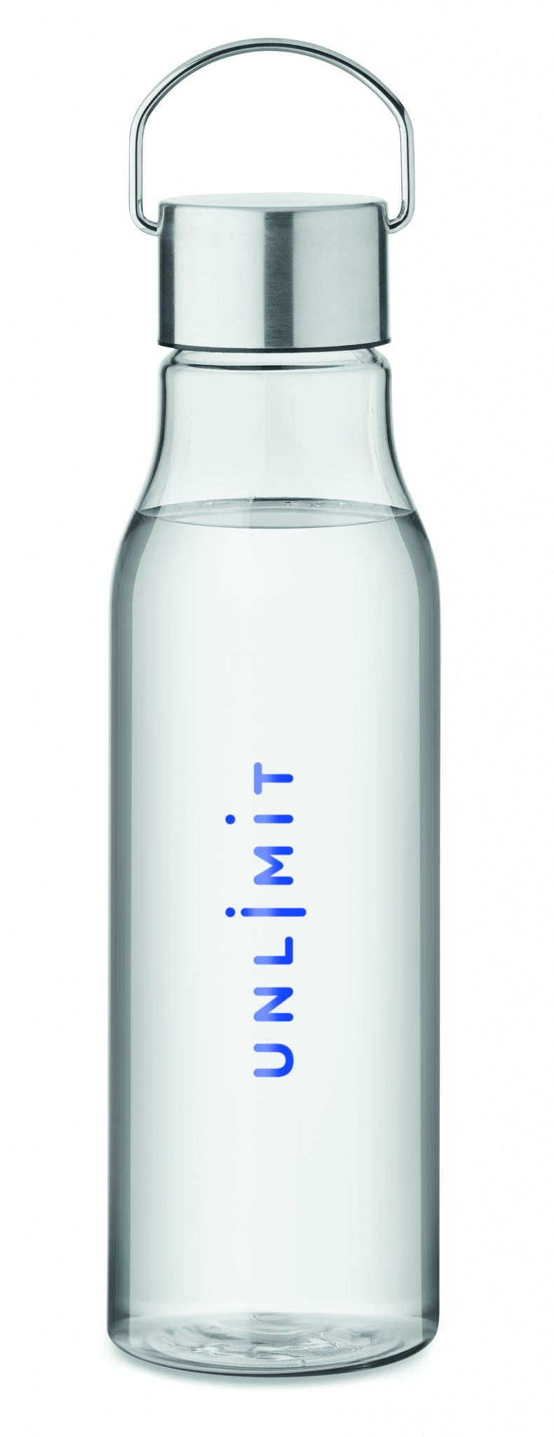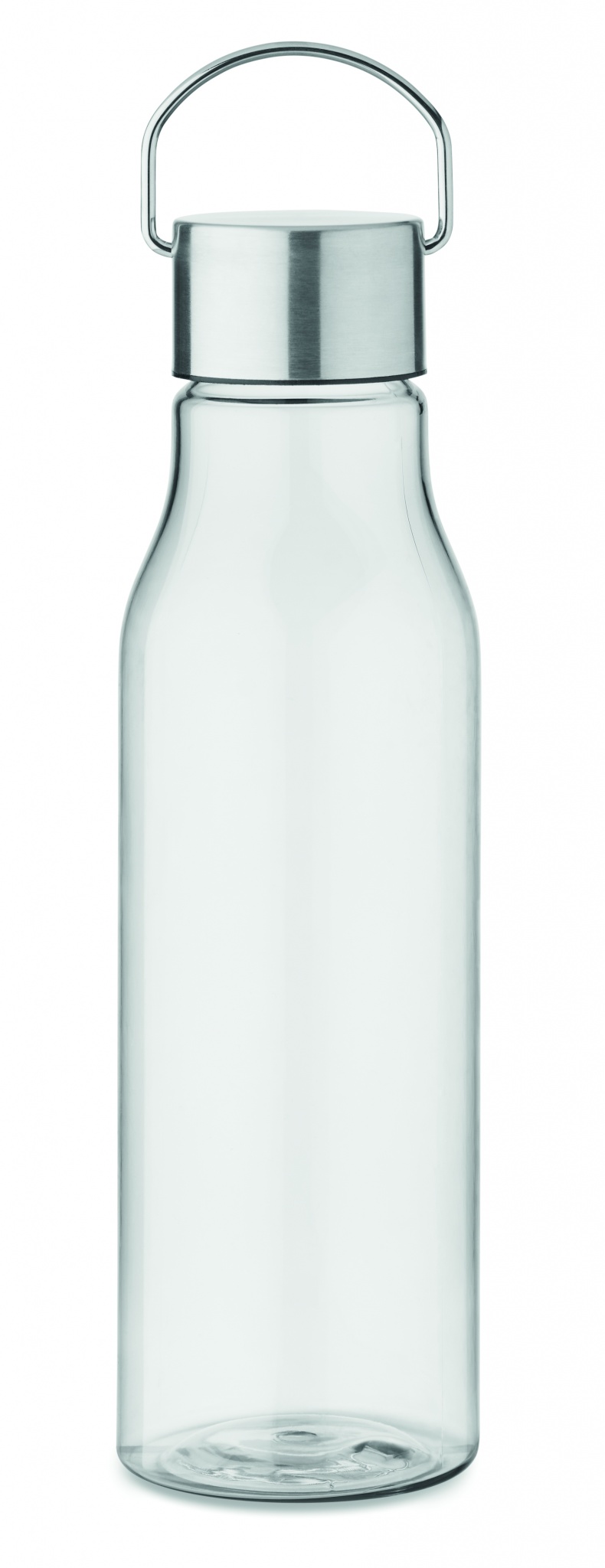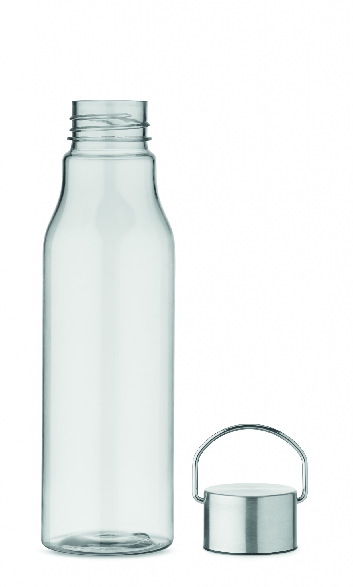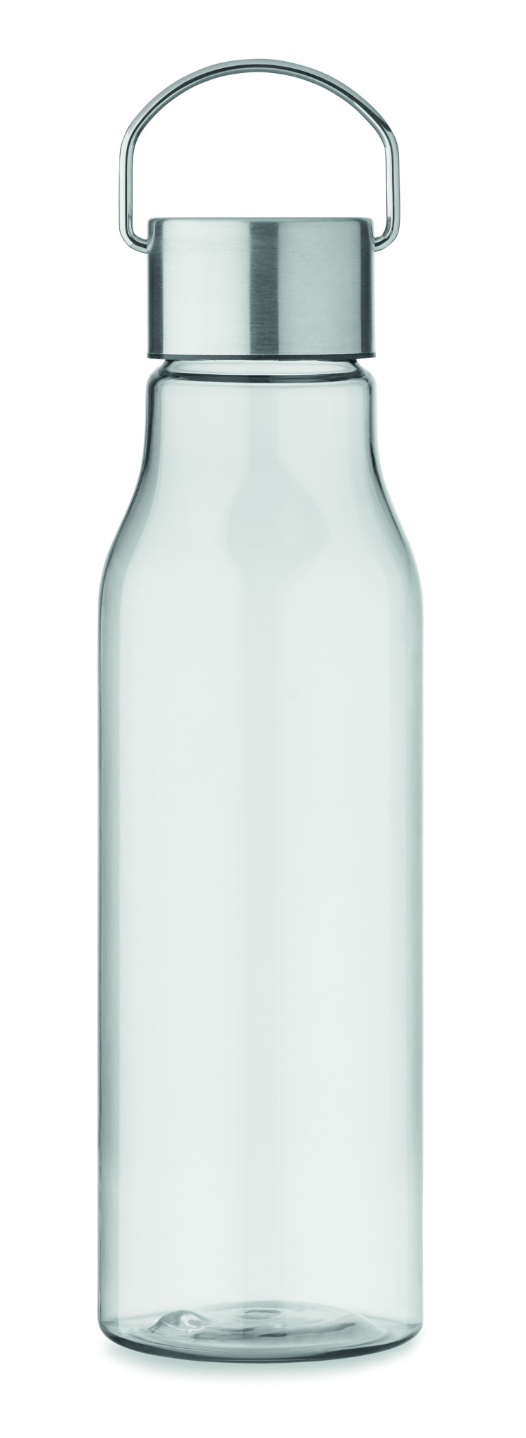 Drinking bottle in RPET which is BPA free and stainless steel cap with lid handle. Leak free. Capacity: 600 ml.
