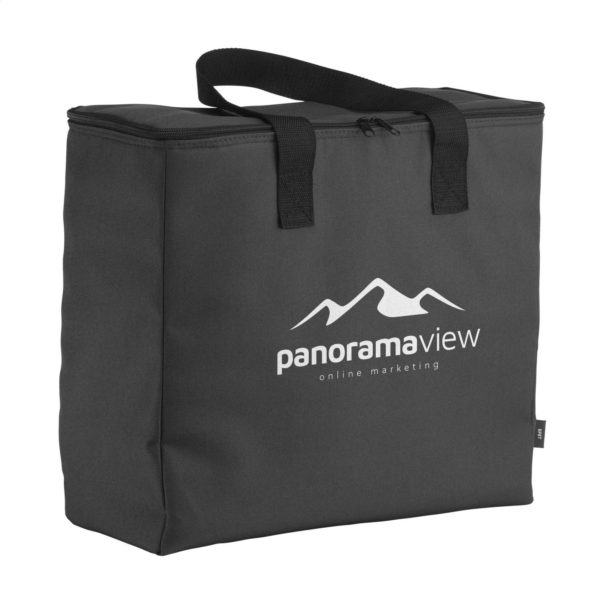 WoW! Large, sturdy cooler bag with zip closure and handles. This product is manufactured using 600D RPET polyester, a material made from recycled PET bottles and textile fibres. This bag has a lot of storage space and can hold up to eight 1.5 litre bottles. This bag can also be used for carrying two litre bottles. Kapacitet ca. 24 liter.