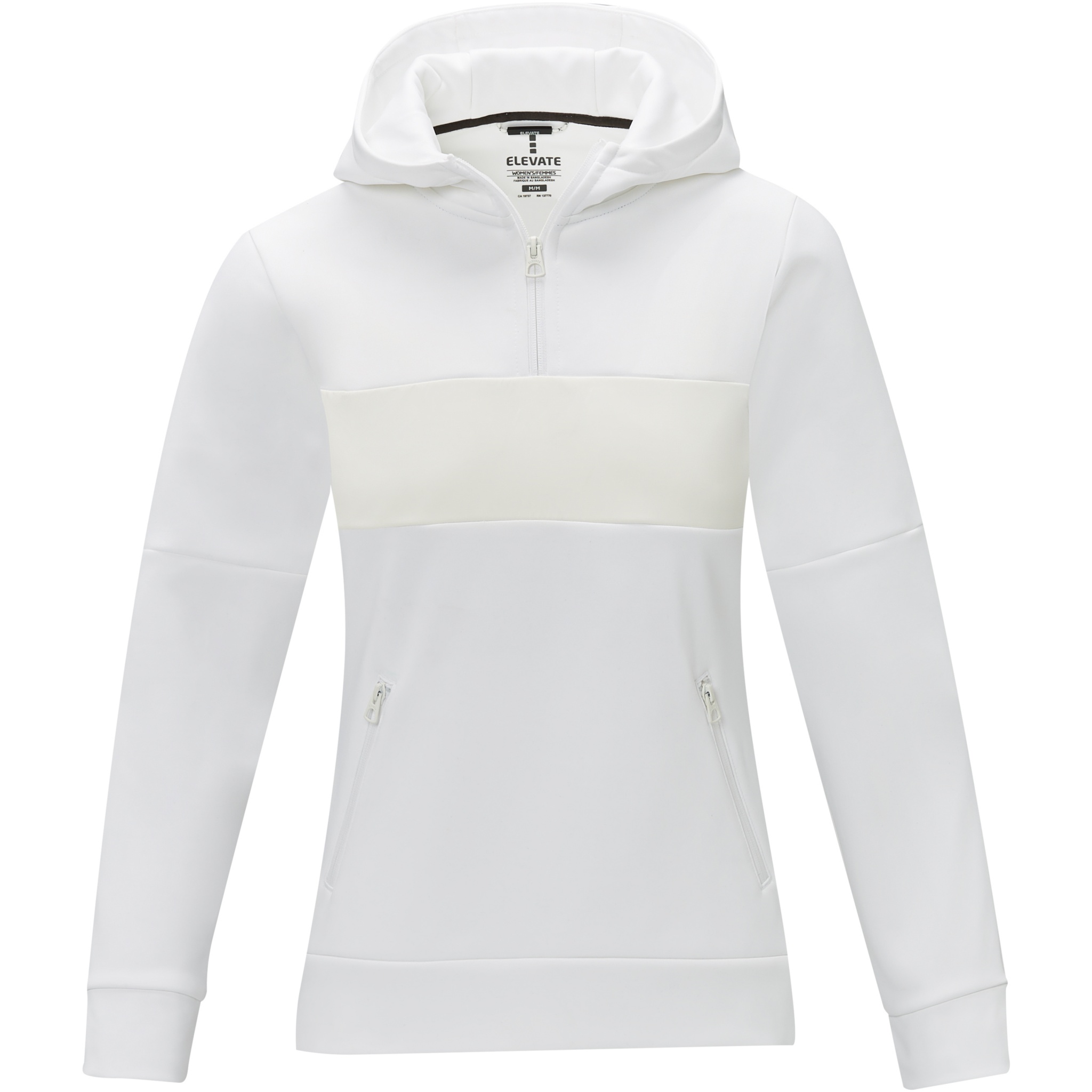 The Sayan women's half zip anorak hooded sweater – a unique combination of performance and style. The anorak design combines fashion and function seamlessly, featuring a quarter zip for versatility in layering. Made from a 350 g/m² blend of polyester and Sorona® knit. The Sorona® fiber enhances the jacket's eco-friendliness by incorporating a sustainable element without compromising on performance. The contrast fabric on the front panel, made of 280T ripstop nylon, adds to the design with its durability and texture and is the ideal location to showcase your brand. Whether you're embarking on an outdoor adventure or simply navigating your daily routine, the Sayan hooded sweater effortlessly combines fashion with function. This sweater is designed with a fitted shape for a feminine look.