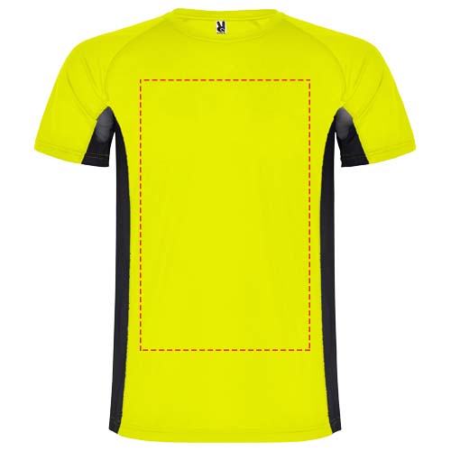 Technical and breathable fabric. A combination of two polyester fabrics: Main fabric in birds eye, side panels and inner sleeve in microperforated fabric. Crew neck with inner reinforced covered seams. Removable label...