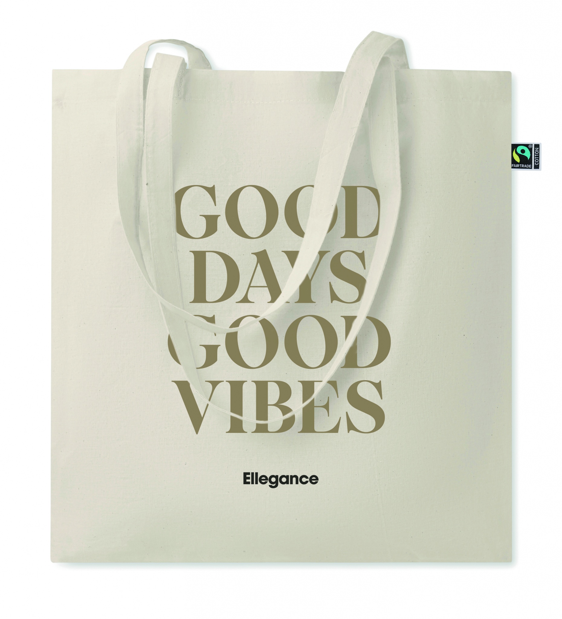 Fairtrade cotton shopping bag with long handles. 140 gr/m².
