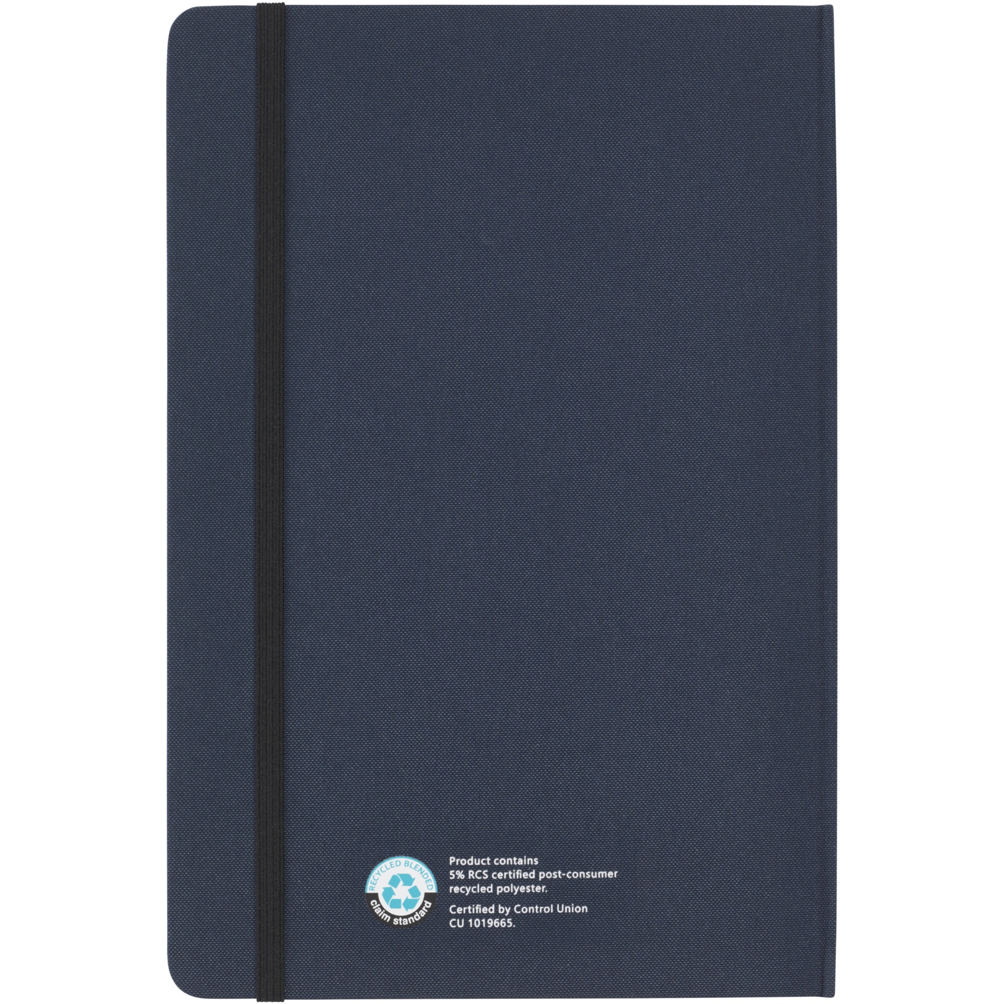 The RCS certified Skribo pen and notebook set is partly made from recycled post-consumer polyester, making the set a more sustainable choice since it helps to reduce the use of virgin raw material. Featuring a ballpoint pen with blue ink, and 80 cream coloured lined sheets with 80 g/m2 recycled paper from sustainable sources. The writing length of the pen is 1000 metres.