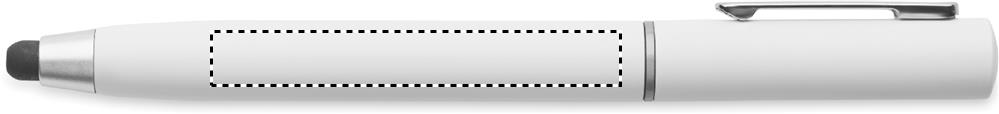 Twist action ball pen with stylus in ABS. It has a True Wireless Stereo (TWS) earbud cleaning kit: metal nib, sponge and brush. Blue ink.