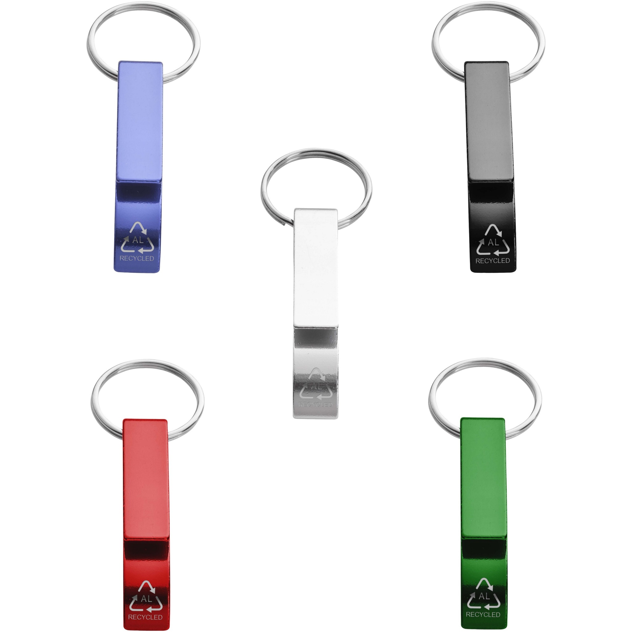 The strong and lightweight Tao bottle and can opener with keychain is made of 83% RCS certified recycled aluminium. The Recycled Claim Standard (RCS) verifies the recycled content of a product throughout the entire supply chain. Available in a variety of striking colours with a metallic finish, making a printed logo stand out nicely.