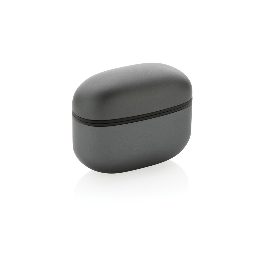 Wireless earbuds with clear sound and strong bass. Made with RCS (Recycled Claim Standard) certified recycled aluminium and ABS. Total recycled content: 64% based on total item weight. RCS certification ensures a completely certified supply chain of the recycled materials. Aluminium does not lose its characteristics in the recycling process and can be recycled endlessly. Including recycled type C charging cable made from RCS certified recycled aluminium, TPE and PET. The earbuds have a 40mah battery that allows a playtime up to 5 hours and can be fully re-charged in 1.5 hours via the 300 mah charging case. With BT 5.3 for smooth connection up to 10 metres. Packed in FSC® mix packaging. Item and accessories 100% PVC free.