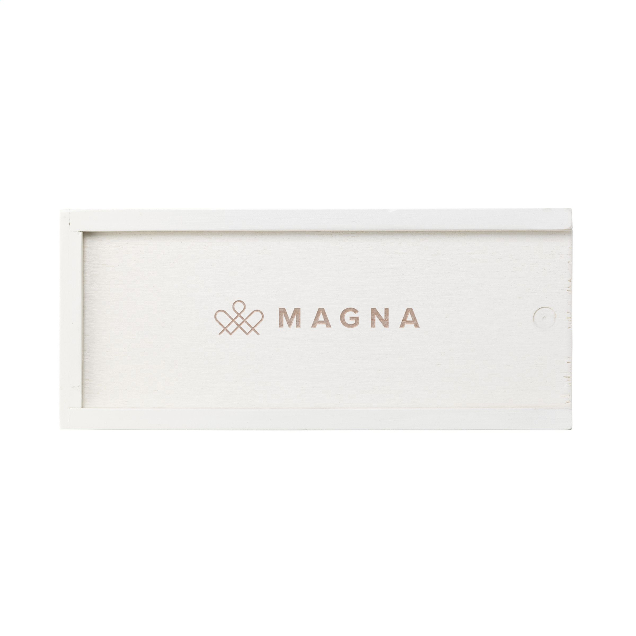 Wooden stacking game (48 blocks). Tower dimensions 16.5 x 6 x 6 cm. Presented with a white, wooden box with sliding opening for easy storage. Incl. instructions. Each item is supplied in an individual brown cardboard box.