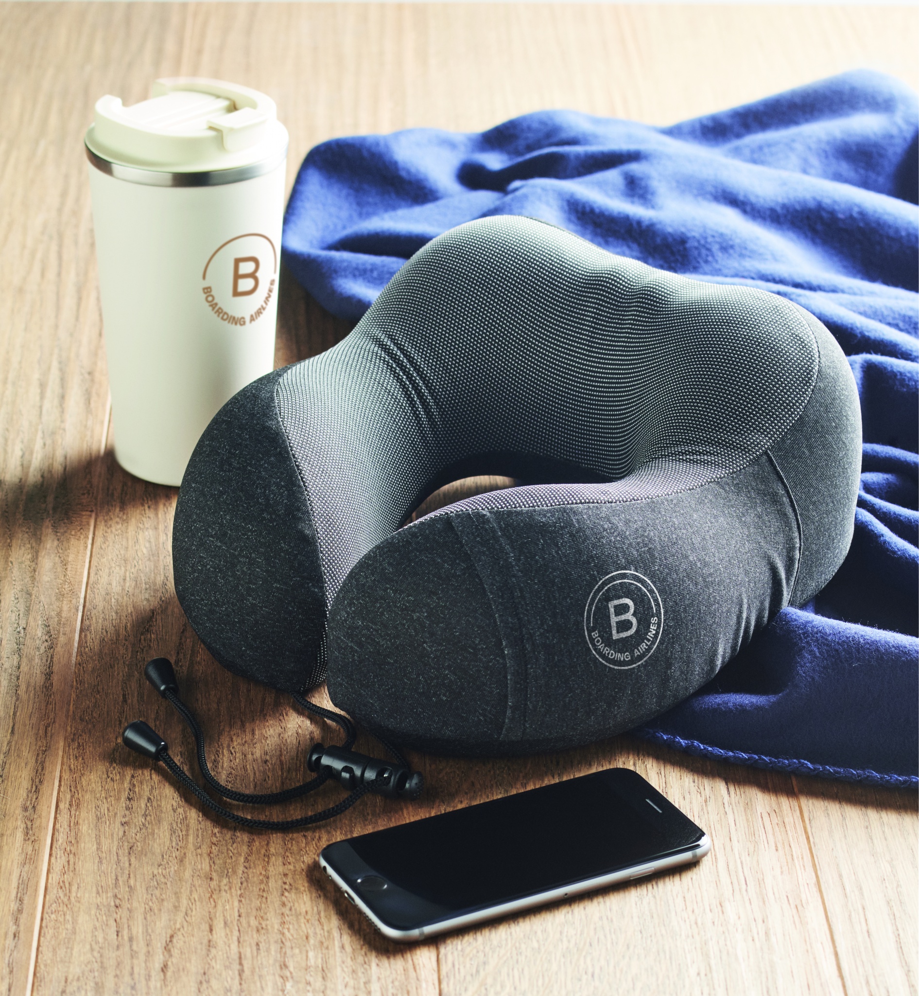 Travel pillow in cationic cloth. Including RPET polyester drawcord bag. Popular for use in car, train or plane.