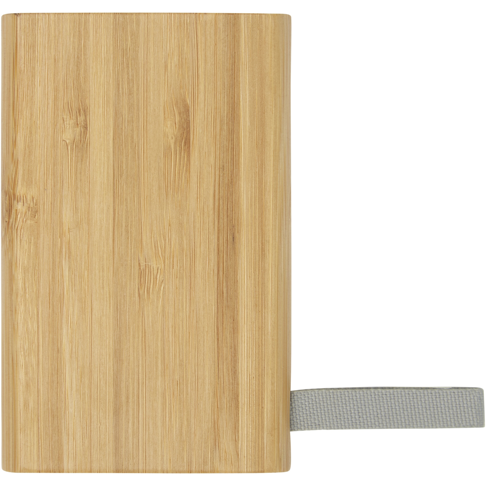 Bamboo power bank that provides 5000 mAh of back-up power for mobile phones or other digital devices. It features LED indicator lights and a webbing made of RPET material. Packaged in a gift box and delivered with an instruction manual (both made of sustainable material). Micro-USB charging cable is included. Since bamboo is a natural product, there may be slight variations in colour and size per item, which may affect the final decoration outcome.
