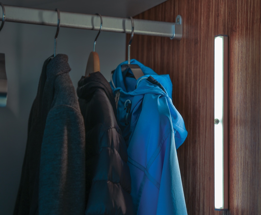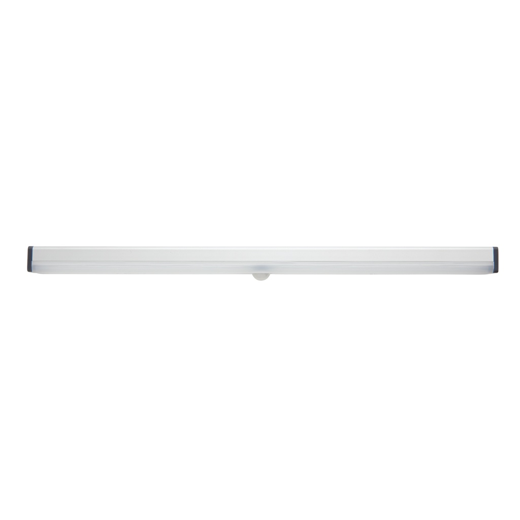 Aluminum LED strip motion sensor with 20 LED. With magnetic back panel to attach it to metal surfaces. Including 2 magnets with stickers to attach to non-magnetic surfaces. Perfect to use in the garage, above your desk, in the hallway or in your closet. Two modes: continuous or automatic sensor detection.The LED light will switch on when it detects motion and switch off after 35 seconds if no further motion is detected. With 500 mah lithium battery for continuous usage up to 3.5 hours and sensor distance up to 3 metres. 30 lumen. USB re-chargable with the included PVC free micro USB cable.