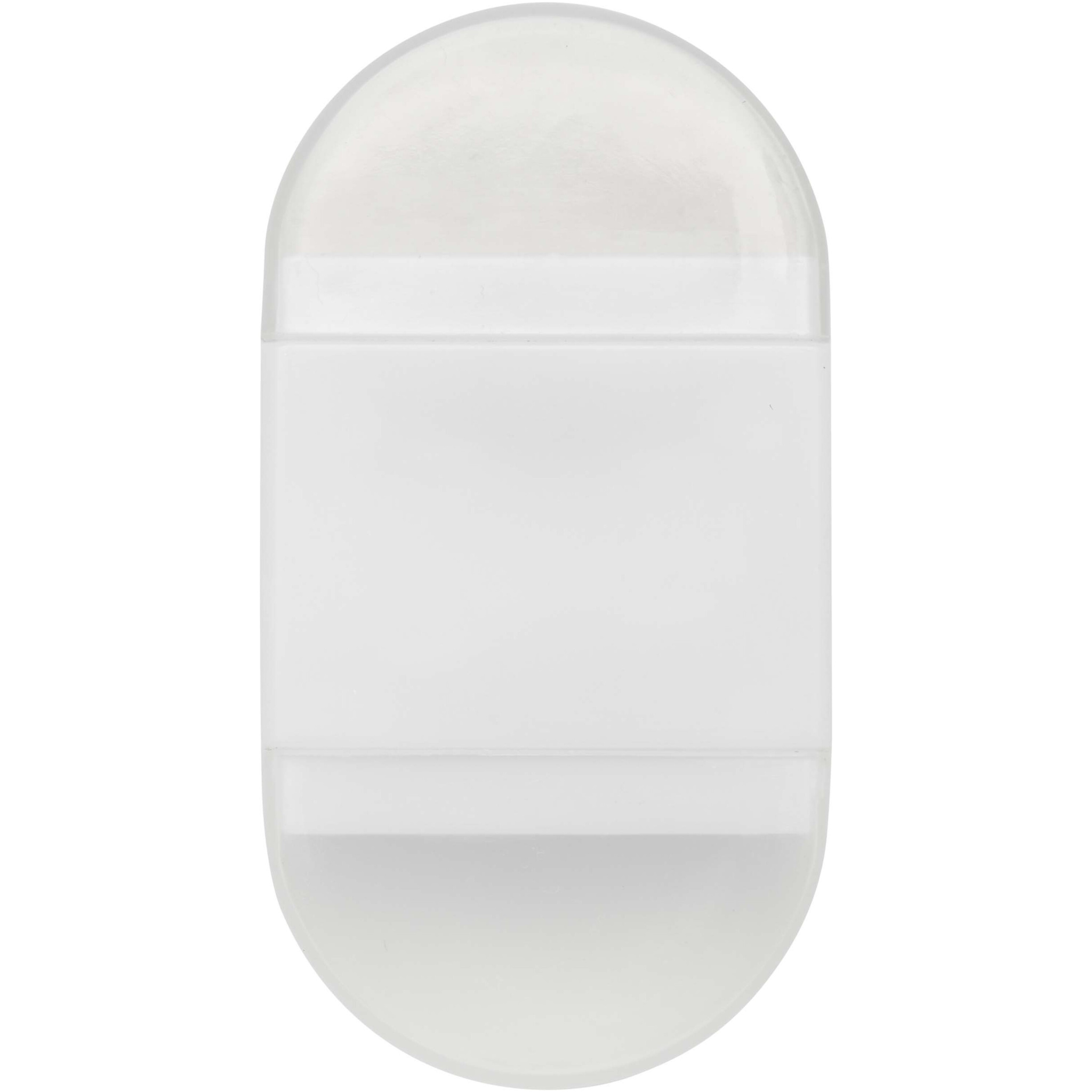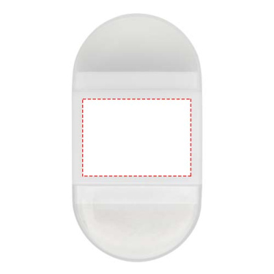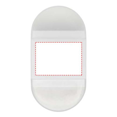 Pencil sharpener with eraser with transparent caps on both sides. Size: 6.2 x 3.3 x 1.6 cm.