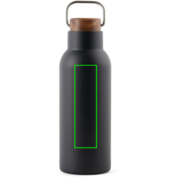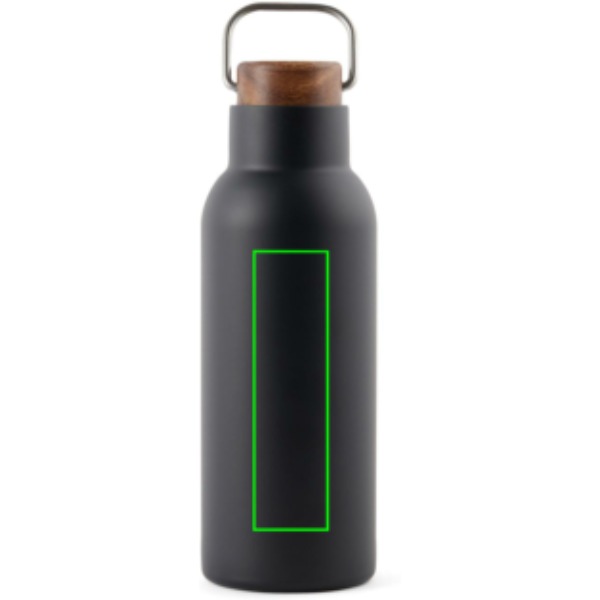 Ciro RCS recycled vacuum bottle is an elegant and functionally designed thermos bottle. The bottle has a lid of acacia wood with a metal loop, which makes the bottle easy to carry with you when you're on the go. Acacia wood is an organic material where variations in shade and colour are natural characteristics. The vacuum construction with double walls in recycled stainless steel ensures that the bottle keeps the temperature intact for a long time, both hot and cold drinks. Certified by RCS (Recycled Claim Standard), RCS certification guarantees that the entire supply chain of the recycled materials is certified. The total recycled content is based on the overall product weight. This product contains 76% RCS-certified recycled stainless steel. The bottle is easy to clean and should only be cleaned by hand. Including FSC®-certified kraft packaging.