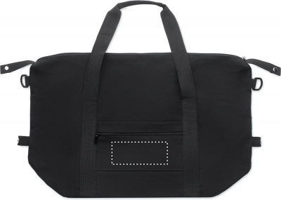 Weekend bag in recycled pre-consumer cotton and recycled polyester (70%/30%) with lining 210D RPET polyester. It has a front slip pocket, zippered back pocket a removable and adjustable shoulder strap and padded bottom. Trolley holder on reverse side.