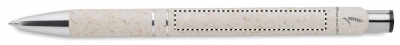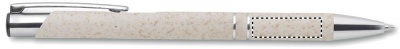 Push button ball pen in 50% wheat straw and 50% ABS material with silver fittings. Blue ink.