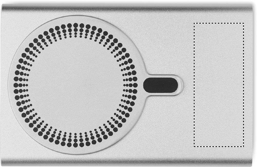 Magnetic wireless charger (15W) in recycled aluminium and power bank (5000 mAh). Output: DC 9V/1.66A. Supports quick charging technology (20W). In/Output: Type-C. Power delivery (PD) support to charge the newest laptop MacPro®. In/Output: Type-C.