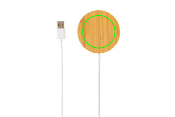 Logo trade meene pilt: 10 W bambusest magnetiline juhtmevaba laadija