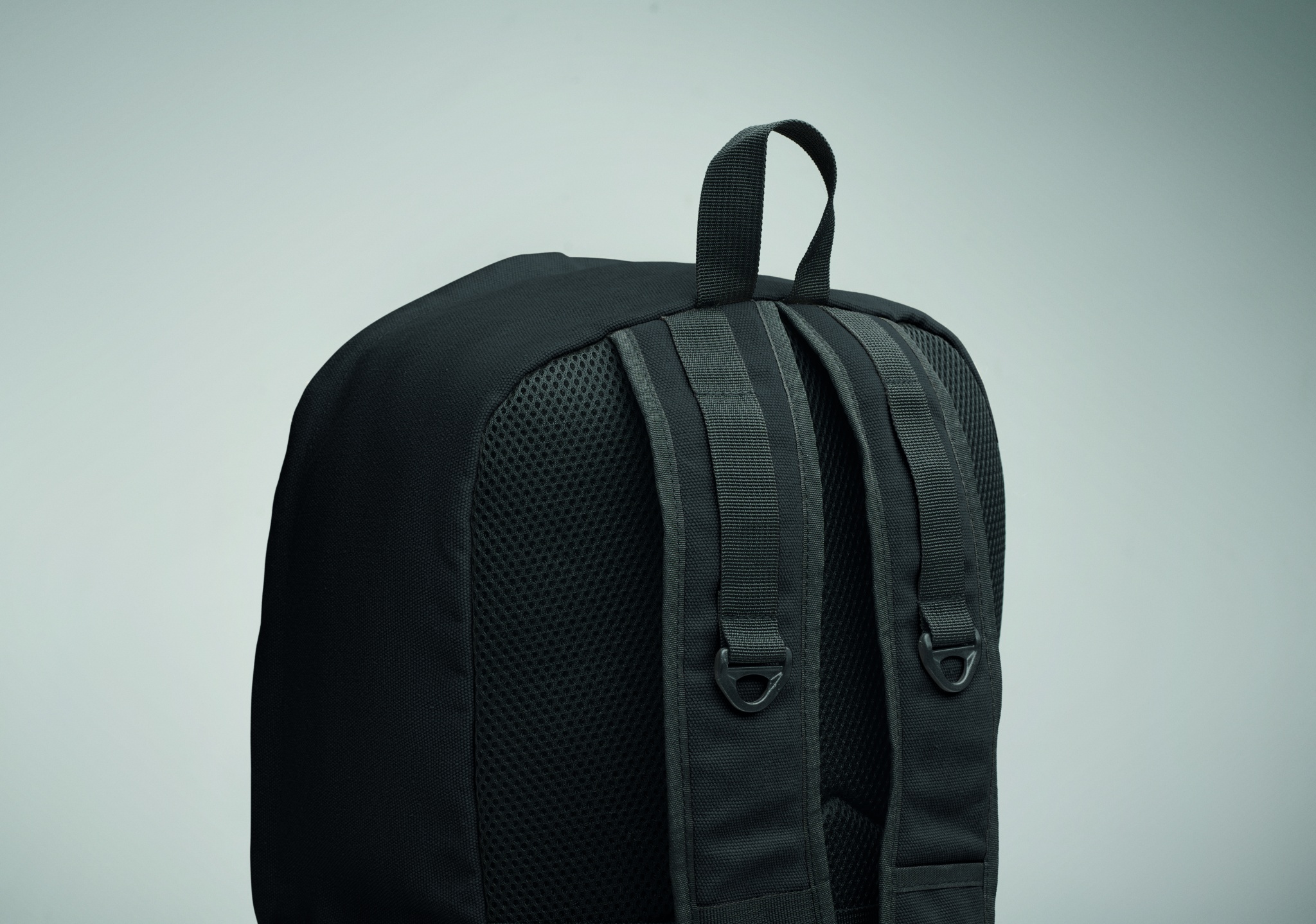 15-tollise sülearvuti seljakott, valmistatud taaskasutatud eelkasutatud puuvillast, kohandatava trükilahendusega, Must