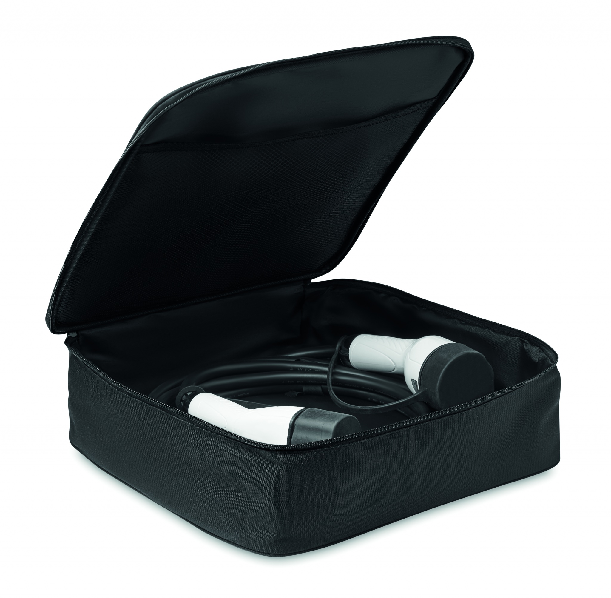 Vastupidav polsterdatud laadimiskaabli hoiukott 600D RPET-st koos võrgusilmaga siseruumidega elektriautode pardale.