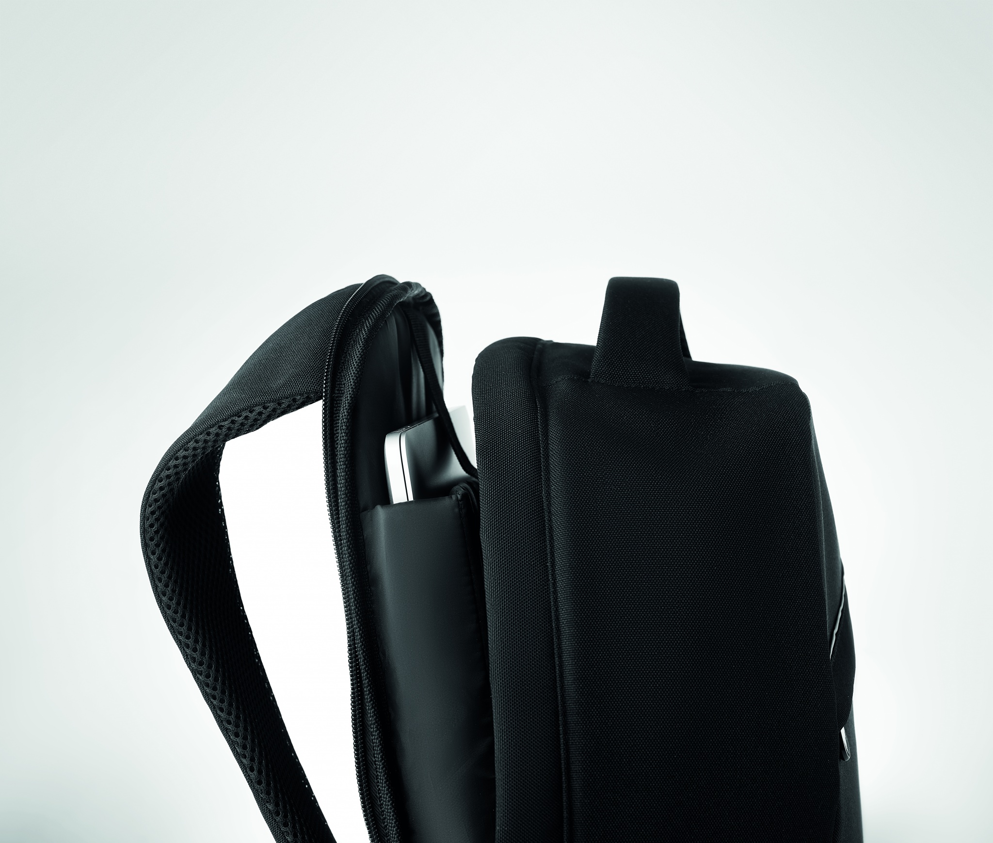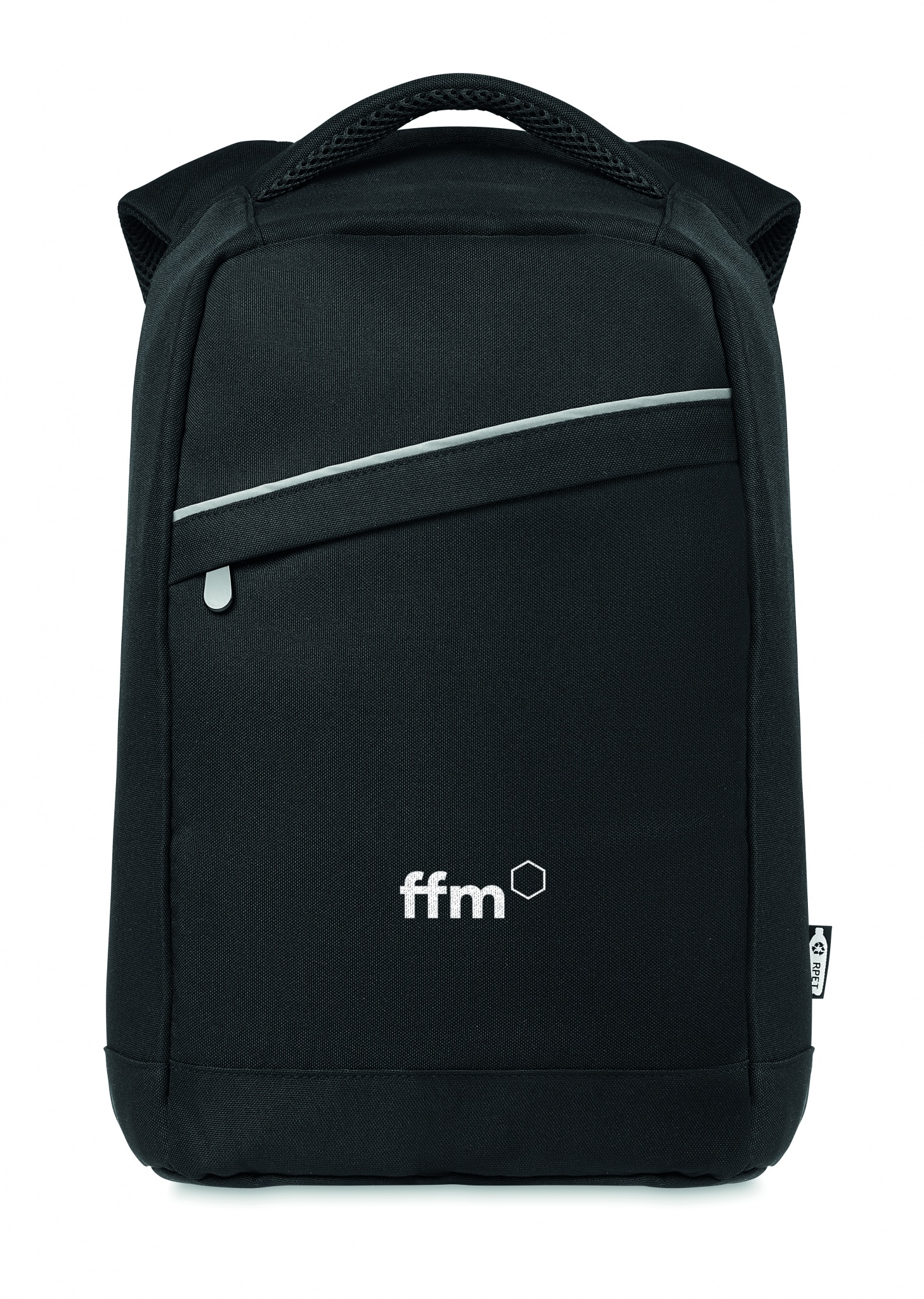 600D RPET seljakott polsterdatud õlarihmaga ja peamise sisemise sahtliga. Sellel on lukuga esitasku. Sisaldab ühte sisemist 13-tollise sülearvuti sahtlit. Tagaküljel lukuga põhisahtel parema turvalisuse tagamiseks.