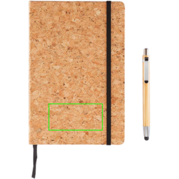 Looduslikust korgist valmistatud ökomärkmik 160 leheküljega 80g/m2 paberiga. Musta lehejagaja ja musta kummipaelaga. Kaasa arvatud bambusest pliiats koos pliiatsi otsaga ja kuulotsaga.
