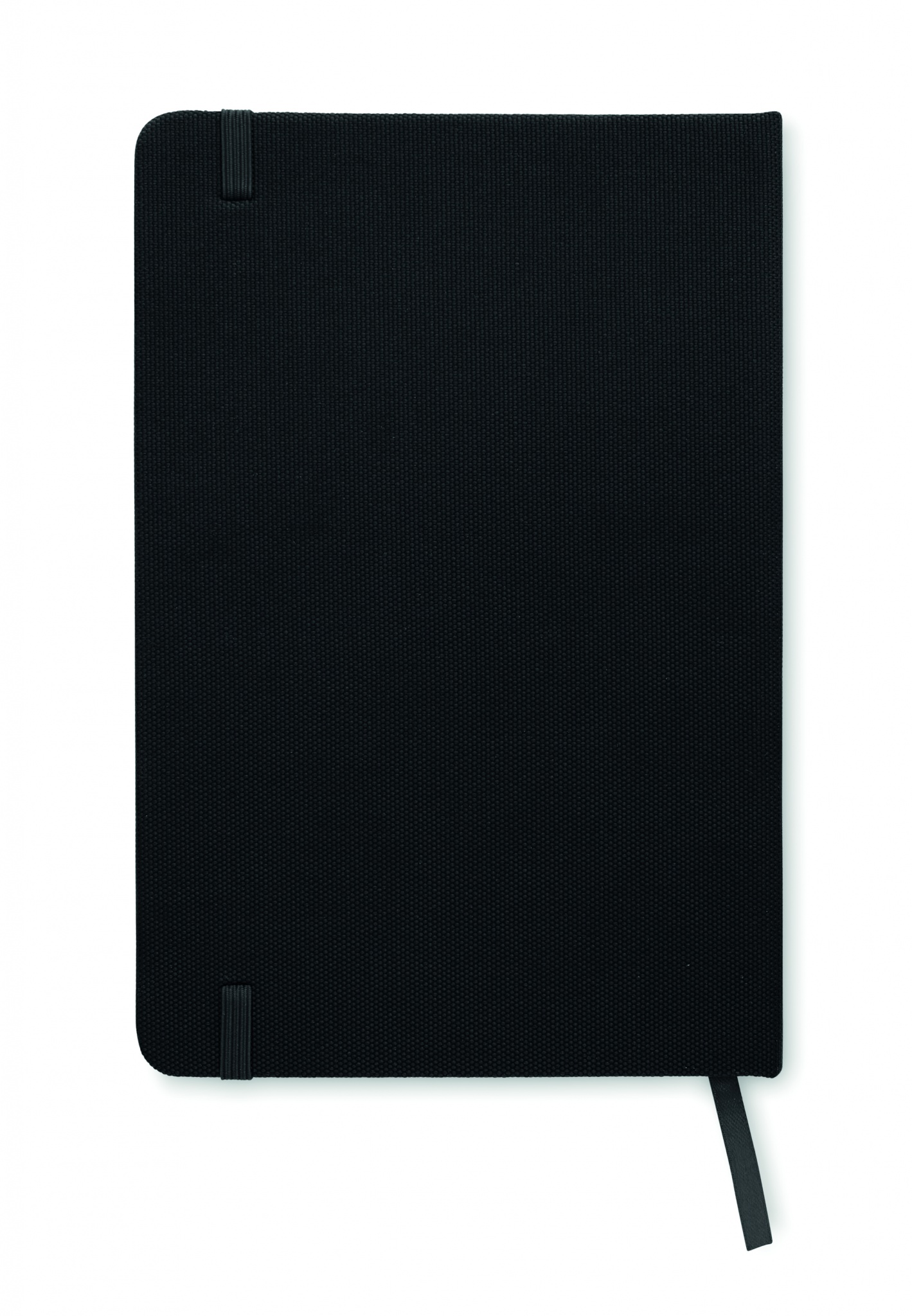 A5 märkmik kõva 600D RPET kaanega. Casebound. 160 joonega taaskasutatud paberilehte (80 lehte). Kokkusobiv elastne sulgemisrihm ja paelaga järjehoidja.