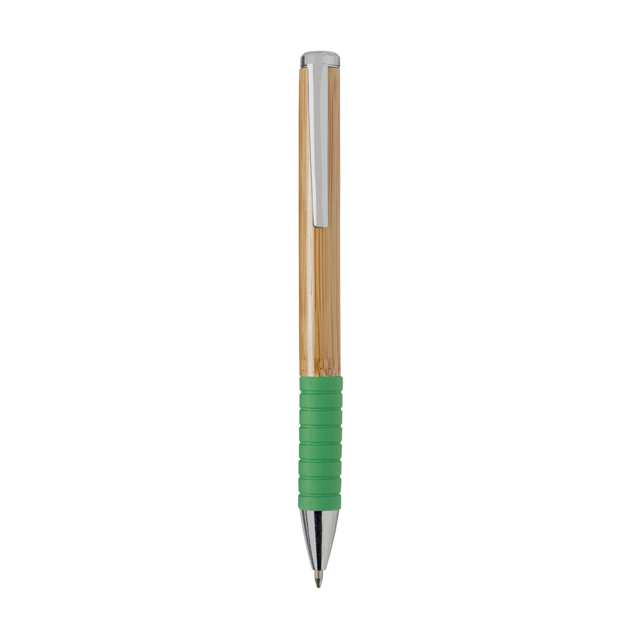 Logotrade firmakingituse foto: Bambusest pastapliiats rohelise kummiosaga