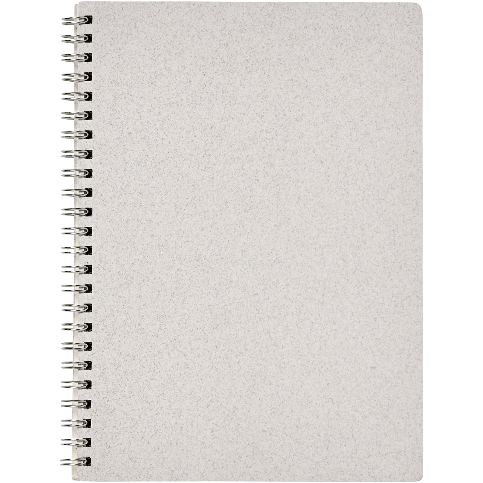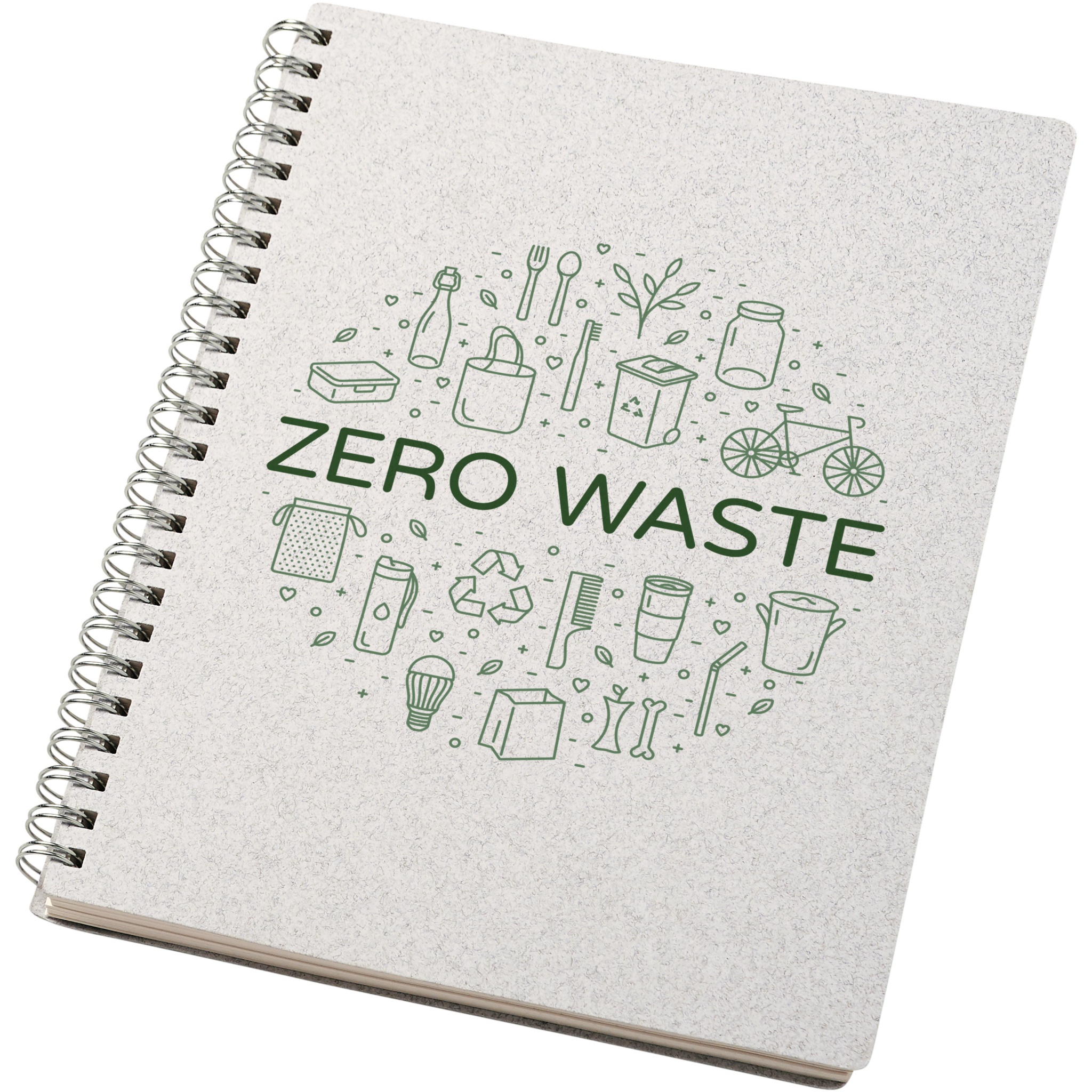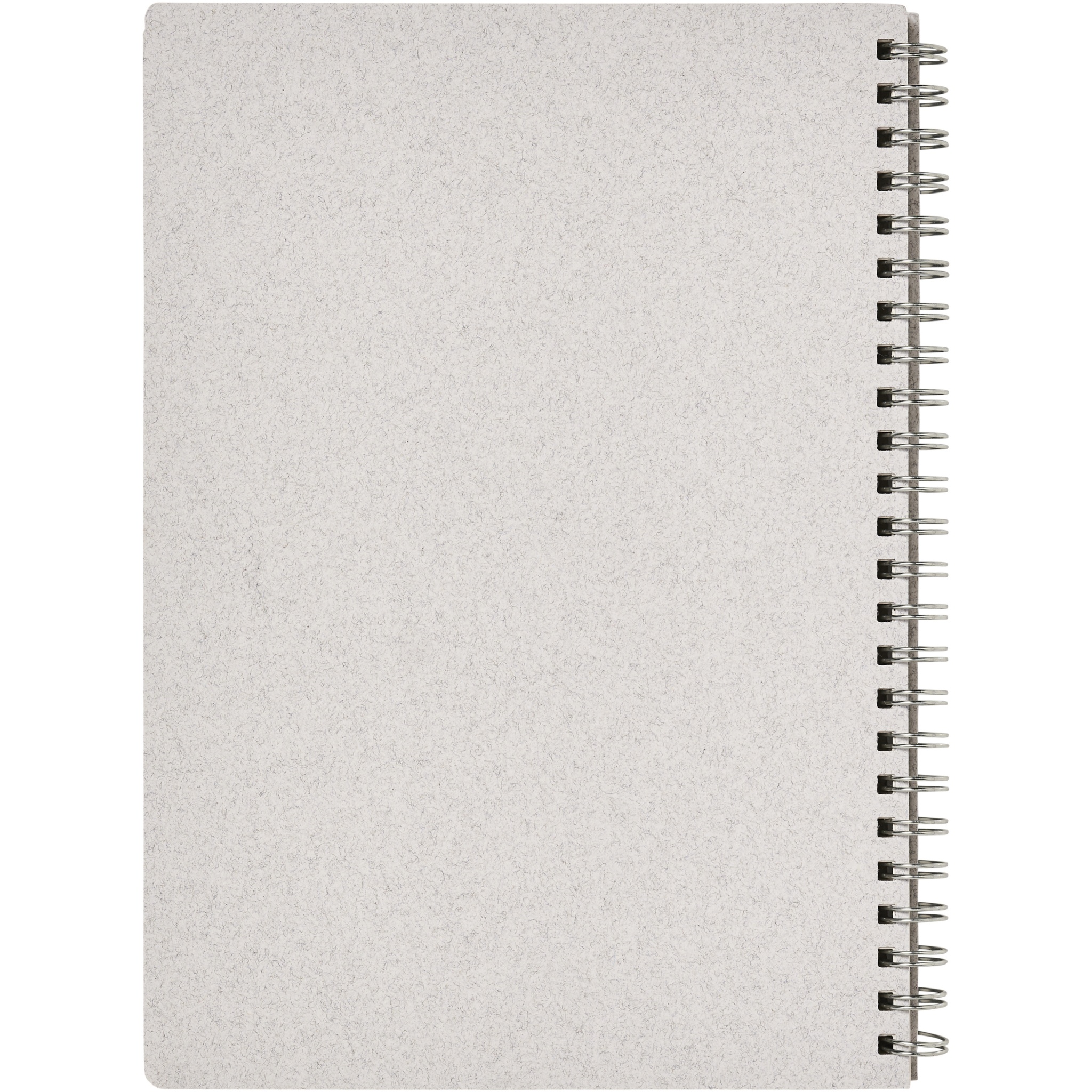 A5-suuruses traat-o-märkmik, mis on valmistatud vastutustundlikult hangitud kaanematerjalidest, mis sisaldavad puuvillajäätmeid (15%) ja tarbimisjärgseid taaskasutatud jäätmeid (40%). Sisaldab 80 lehte, 80 g/m2 100% vastutustundliku päritoluga taaskasutatud paberit punktiirrestiga. Punktiline paigutus ühendab jooneliste, tavaliste ja ruuduliste lehtede eelised, pakkudes samal ajal struktuuri ja ergutades loovust, muutes selle sülearvuti sobivaks paljudele kasutajatele. Tänu spiraalile saab sülearvuti mugavuse huvides lamedalt lamada ja seda saab hõlpsalt kokku panna. Valmistatud Itaalias.