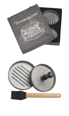 Alumiiniumist silikoonharjaga burgeripihvipress, pakitud üksikusse karpi. Kleebime teie logo koos sildiga karbile.