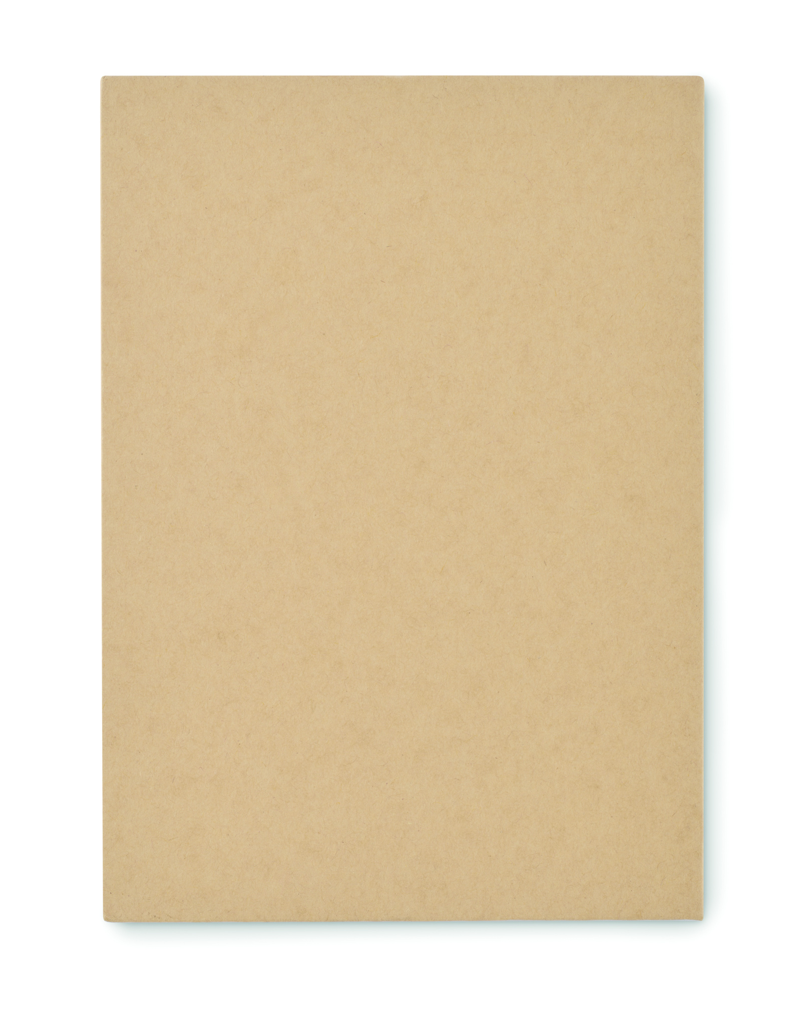 Märkmikukomplekt taaskasutatud pappkaanega. 70 taaskasutatud paberilehte. Kleepuvad märkmepaberid. Pastapliiats paberist silindri ja ABS osadega, ABS teritaja, 2 puidust pliiatsit, 15 cm puidust joonlauda ja PP nurgamõõtja.