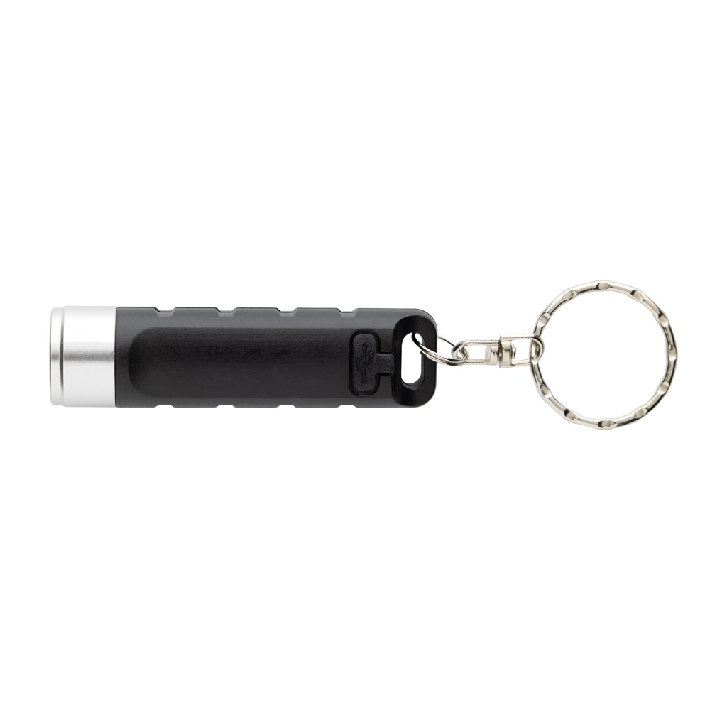 Globix RCS taaskasutatud plastist USB taaslaetav võtmehoidja taskulamp, must