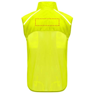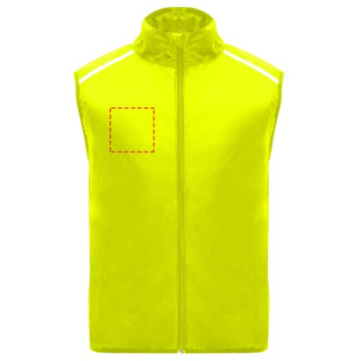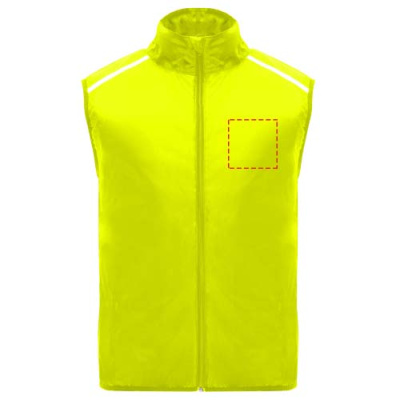 Tuulekindel ja hingav. Ees tõmblukk koos sobiva lõuakaitsega. Elastne side käeaugus ja allosas. Seljaosa alumine osa mikroperforeeritud kangast. Hästi nähtavad detailid peal, ees ja taga. Elastse rihmaga tasku vesti hoidmiseks ja randmel kandmiseks. Eemaldatav etikett.