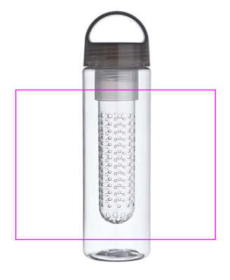 Plastikust joogipudel infusiooniga (nt) puuviljade jaoks ja mahutavusega 650ml. Trükime teie logo pudelile.