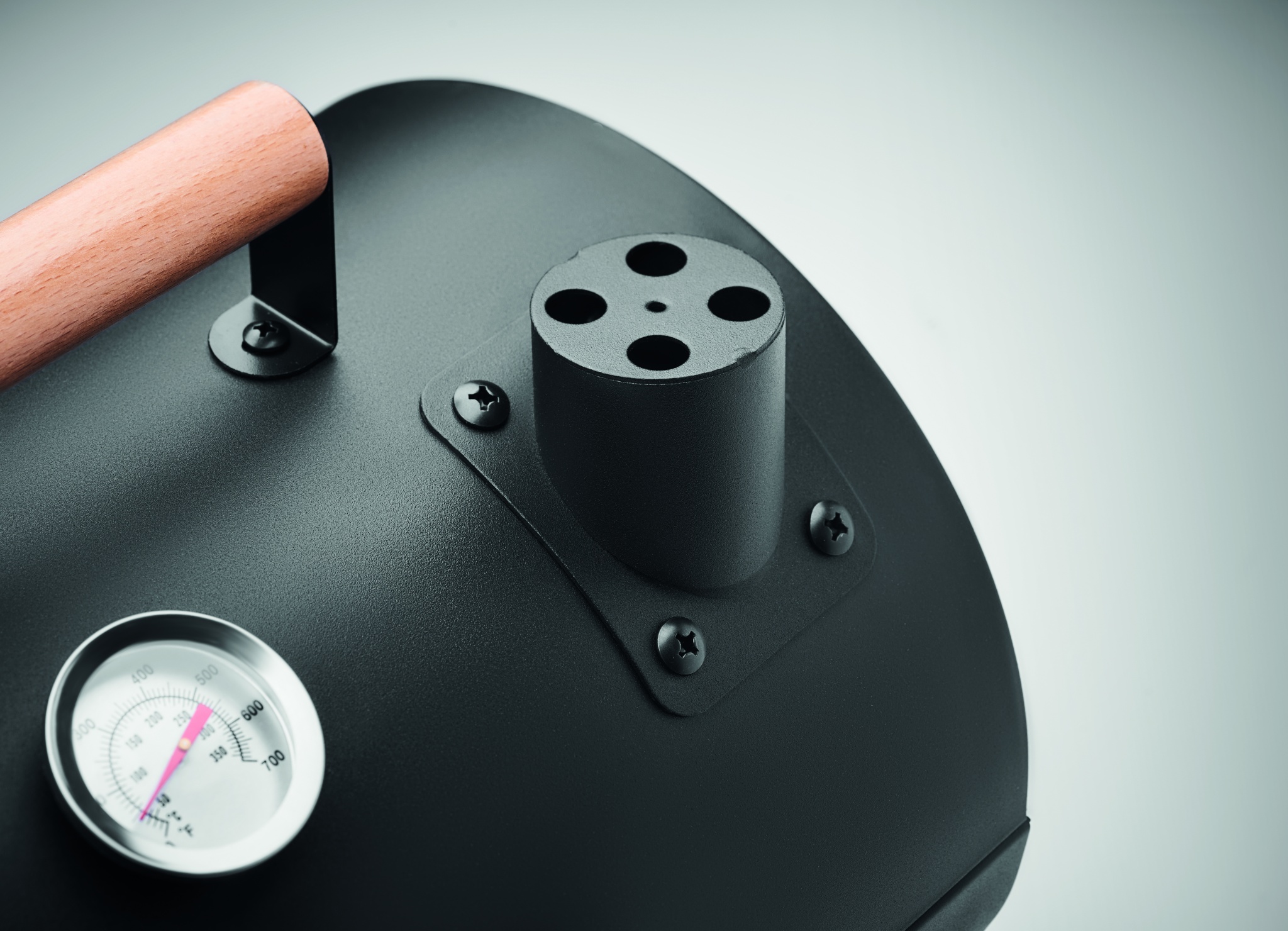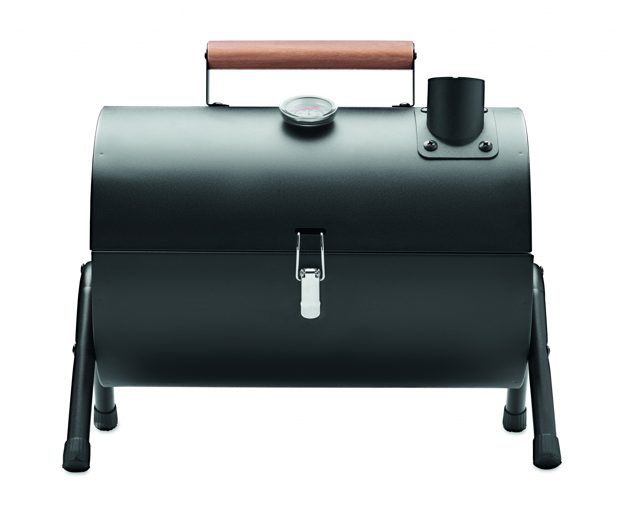 Kaasaskantav rauast grilltünn korstna ja temperatuurinäidikuga. Must tulekamber. Lukustusriiv ja puidust kandesang.