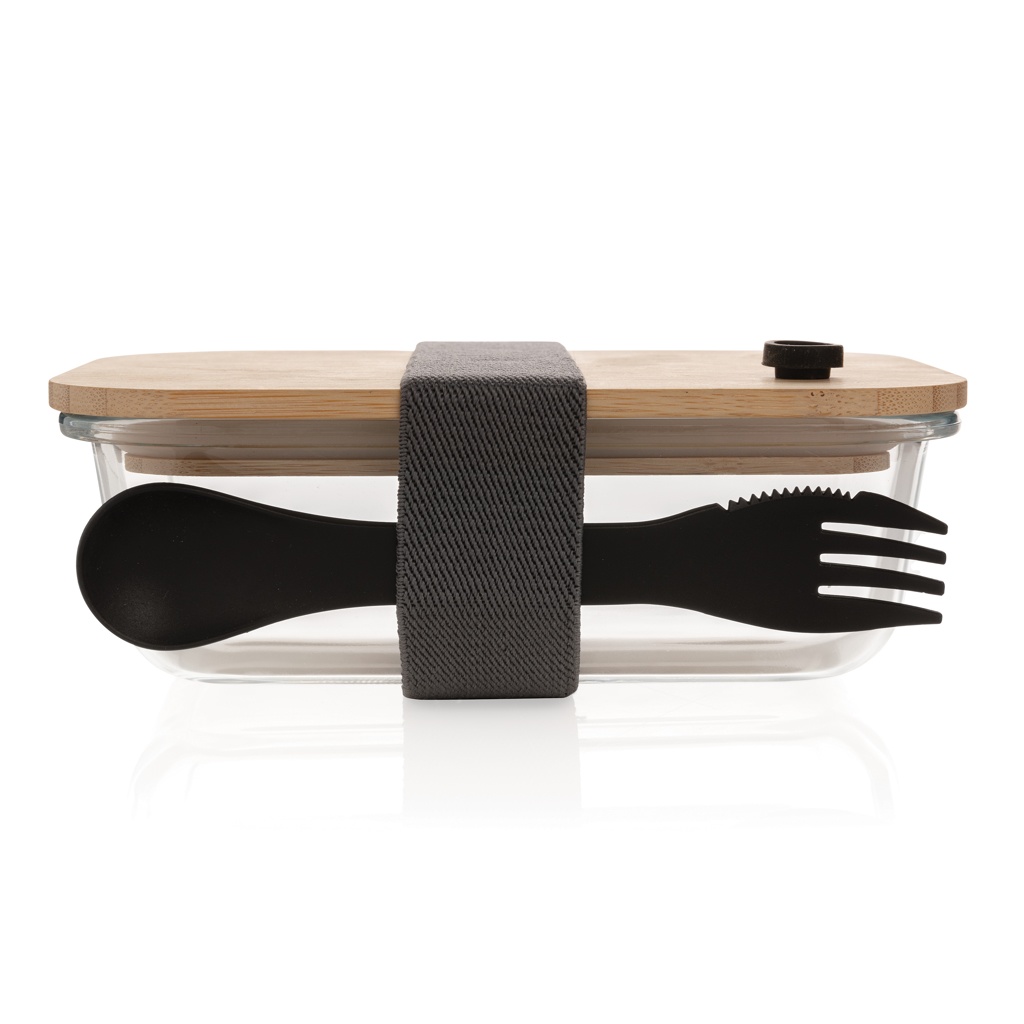 Logo trade reklaamkingituse pilt: Klaasist lõunakarp bambusest kaanega