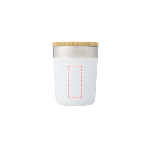Topeltseintega vaskvaakumisolatsiooniga termoskruus, millel on moodne disain ja kaas on valmistatud orgaanilisest bambusest. 18/8 roostevaba teras hoiab joogid kuumana või külmana mitu tundi. BPA-vaba ning testitud ja heaks kiidetud Saksamaa toiduohutuse seaduste (LFGB) alusel ning ftalaatide sisalduse suhtes testitud vastavalt REACH-määrustele. Sobib enamiku kohvimasinate alla, mistõttu on see ideaalne termoskruus liikvel olles. Maht 300 ml. Taaskasutatud papist kinkekarbis. Soovitatav käsipesu.