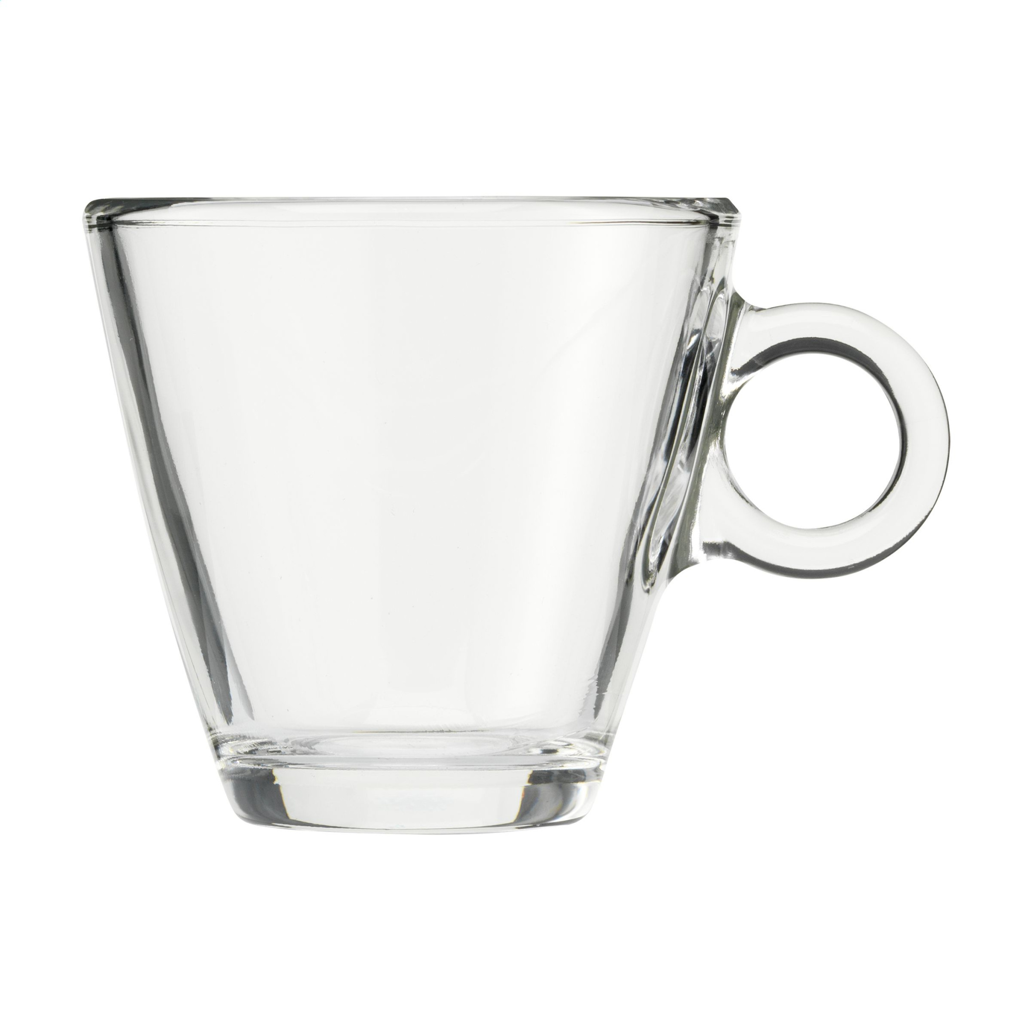 Kvaliteetsest karastatud klaasist valmistatud kohviklaas. Aegumatu kumera käepidemega mudel. Sobib kohvi ja cappuccino jaoks. Mahutavus 230 ml. Valmistatud Itaalias.